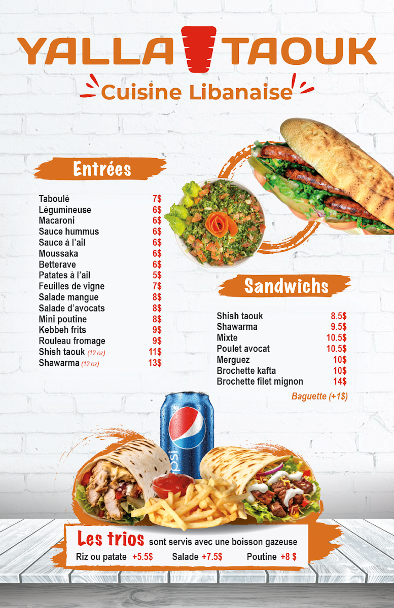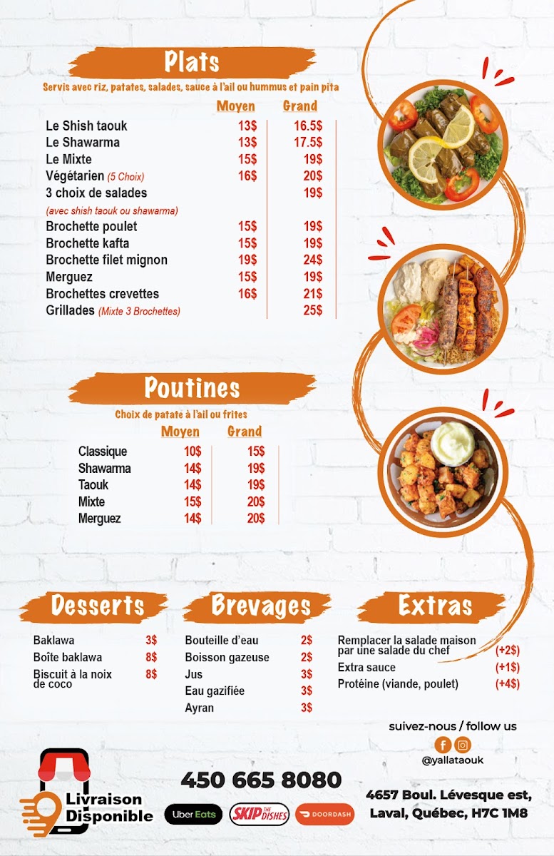 Nestled in the heart of Laval, Yalla Taouk is your passport to authentic Middle Eastern cuisine, where bold flavors and generous portions are the stars of the show. This casual eatery is renowned for its inviting atmosphere and swift service, making it an ideal spot for both quick lunches and leisurely dinners.